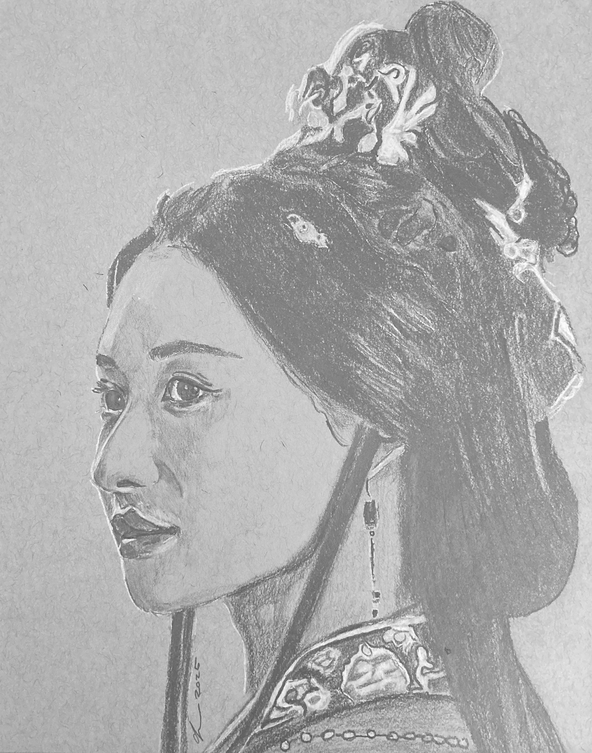 graphite pencil drawing on toned gray, 8X10