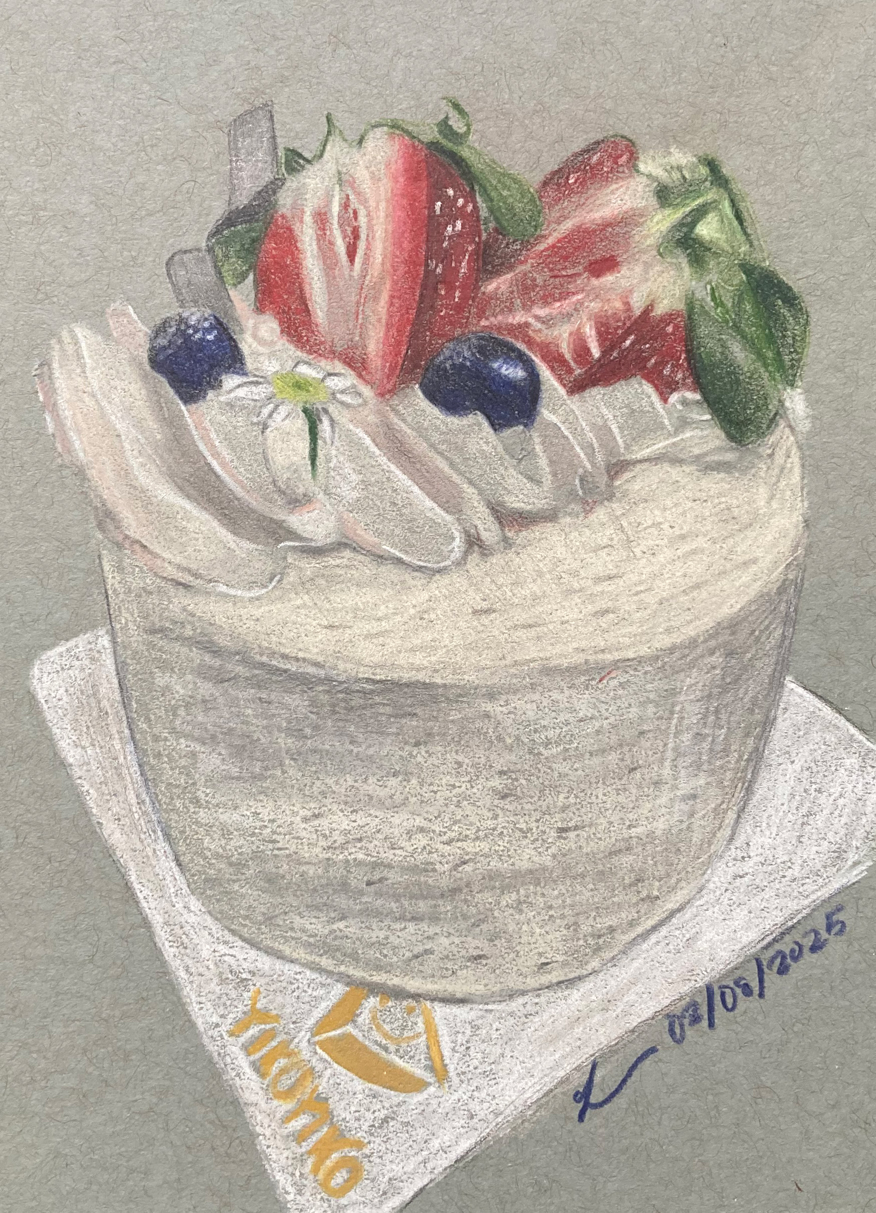 Faber Castell Polychromos colored pencil drawing on toned blue, 5X8